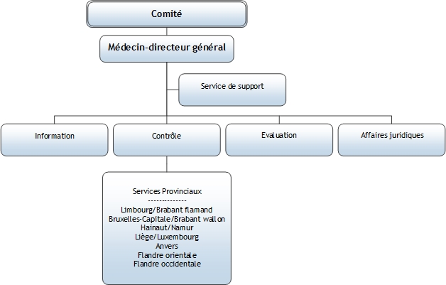 Cette direction est dirigée par un médecin-inspecteur général, responsable de la conception et de la réalisation des actions de contrôle des facturations à l’assurance soins de santé par les dispensateurs et institutions de soins.