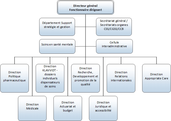 - organise et dirige aux niveaux conceptuel, technique, budgétaire et administratif le fonctionnement des organes de concertation et leurs groupes de travail (e.a. la Commission de remboursement des médicaments)