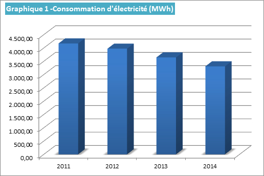 Un de nos objectifs en vue du système de gestion environnementale EMAS est la réduction de notre consommation d'énergie. Ces dernières années, nous avons constaté une forte baisse de la consommation d'électricité dans nos bâtiments.