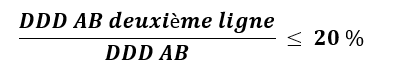 Cet indicateur donne le pourcentage maximum de DDD d'antibiotiques de deuxième ligne prescrites, par rapport au nombre total de DDD d'antibiotiques prescrites.