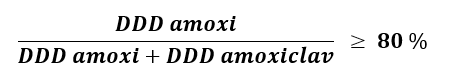 Cet indicateur donne le pourcentage minimum de DDD d'amoxicilline « pure » (non associée à de l'acide clavulanique) prescrites, par rapport au nombre total de DDD d'amoxicilline (associées ou non à de l'acide clavulanique) prescrites.