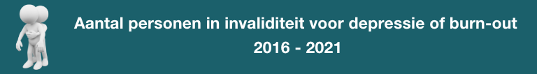 - 36,44% van de mensen in invaliditeit op 31 december 2021 zijn arbeidsongeschikt door een psychische stoornissen. Van hen lijdt 66,39% aan een depressie of een burn-out.