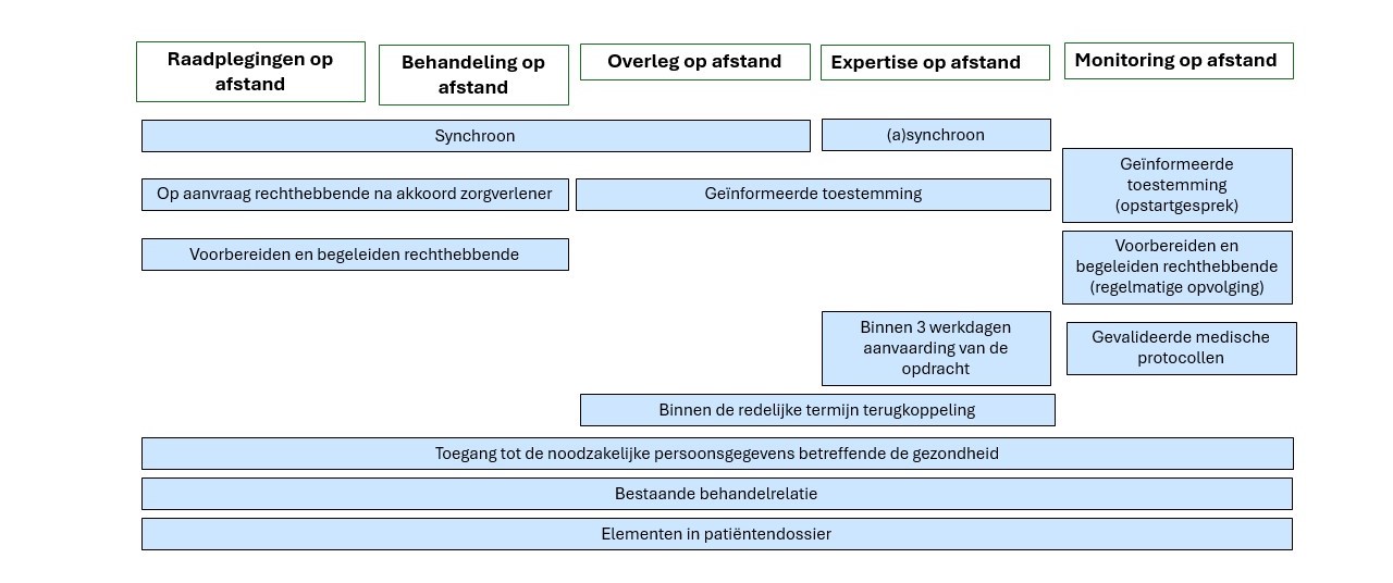 Voor elke vorm van zorg op afstand gelden specifieke voorwaarden waaraan de zorg moet voldoen: