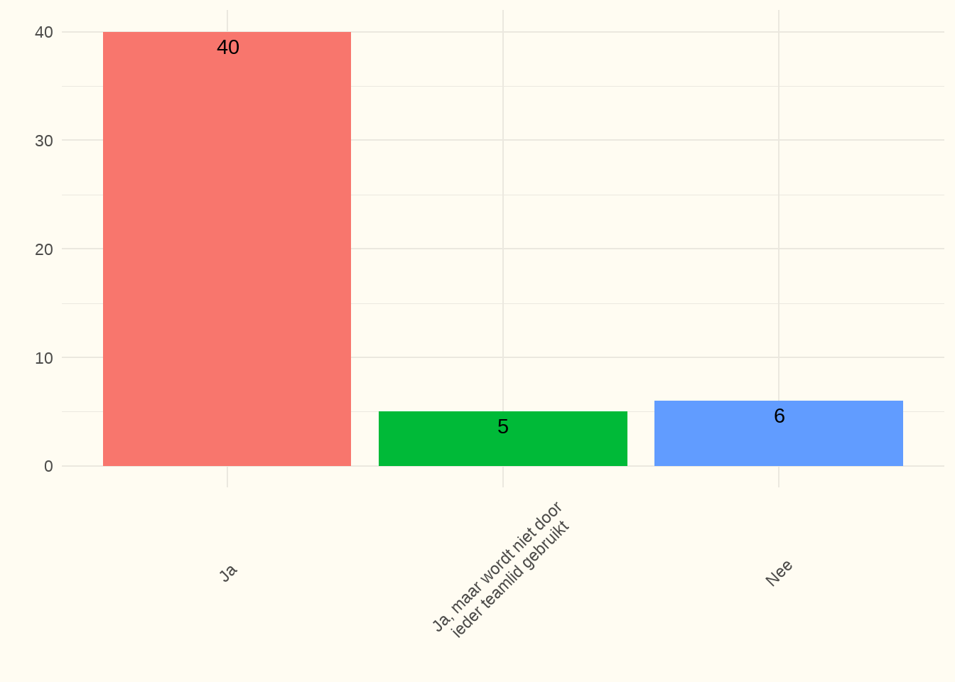 Bespreking: 54% van de centra antwoordden hierover te beschikken en gaven aan dat het ook geïmplementeerd is. Twee centra hadden wel een protocol, doch niet ieder teamlid gebruikte het. Het responspercentage bedroeg 100%.